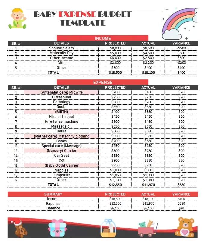 A baby budget template is a very significant tool which any individual can use to prepare it. If you are going to have a baby in the next few months, then you need to order things in advance. For instance, prepare a budget for a baby to manage all the things required for the baby. According to figures from research conducted in the United States of America, almost a quarter million dollars may be estimated for raising a baby from birth to seventeen. Obviously, it is a huge figure, but you don’t need to worry about the correct figures for raising the baby. However, the concerning factor is how to create a budget and stick to it. A good baby budget template is one which you use to create a perfect one for yourself. Everyone wishes to complete his or her family, especially when a beautiful and new baby is coming. In this article, I shall talk about the baby’s budget and all the information related to the allocation of budget.