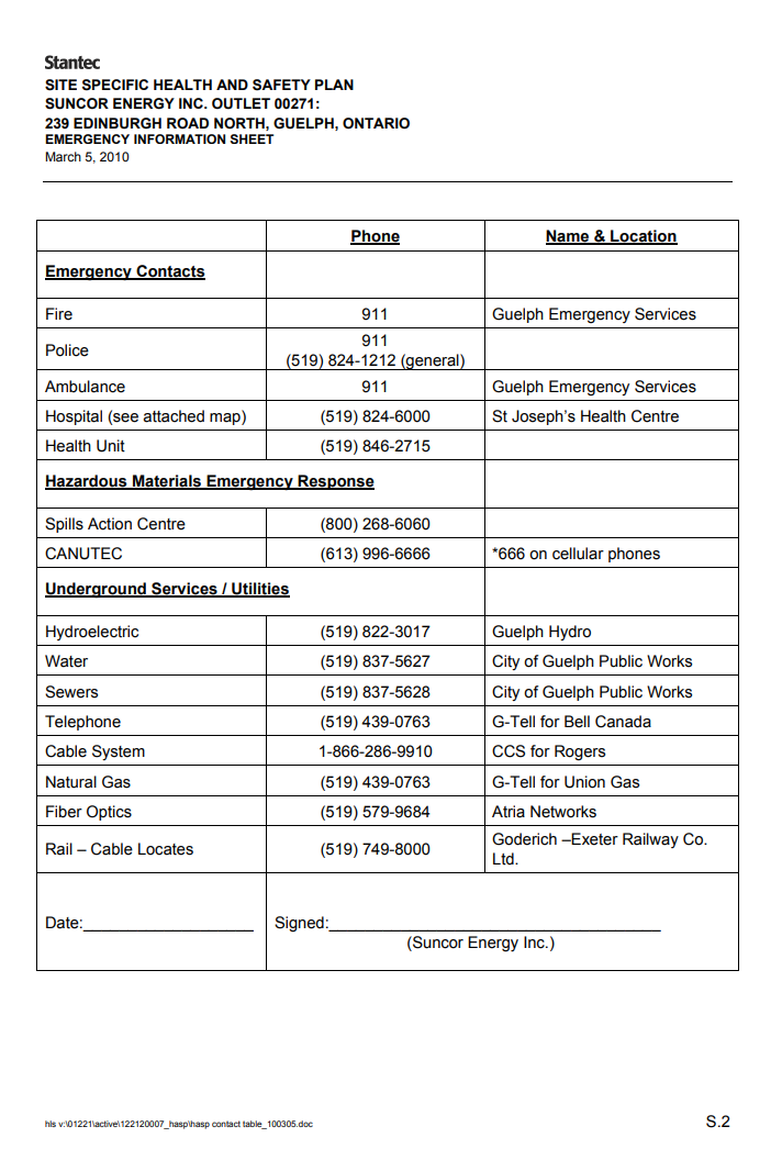 Details of Health and Safety Plan: