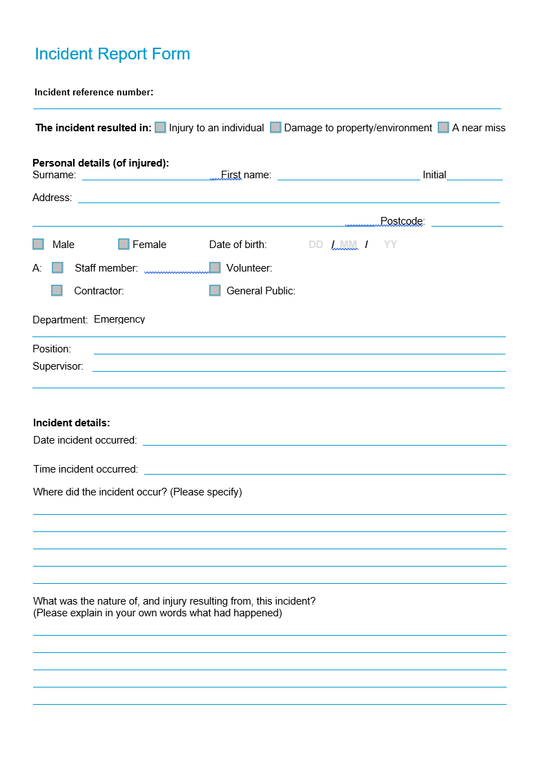 An incident report template is used to make a report of an unusual event to include circumstances, date, time and location of the incident. It also describes the witnesses and staff members who were available at the time of the incident. An incident report is usually used in healthcare facilities, such as hospitals, nursing homes, flats and medical centers. Primarily, it is filled out to record the details of an accident that took place at a certain time. You can make an incident report by collecting all the facts related to the incident. This way, it determines the sequence of an incident, then analyzes the whole situation and mentions the recommendation based on the data. Moreover, incident reports have an important impact on a company, organization and other professional associations. You should also keep in mind that the reader can easily find information about the incident and be able to convey it both in writing and using graphical data. In other words, this report plays a significant role in business to maintaining its establishment.