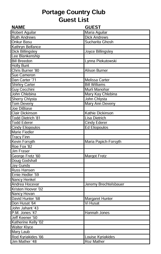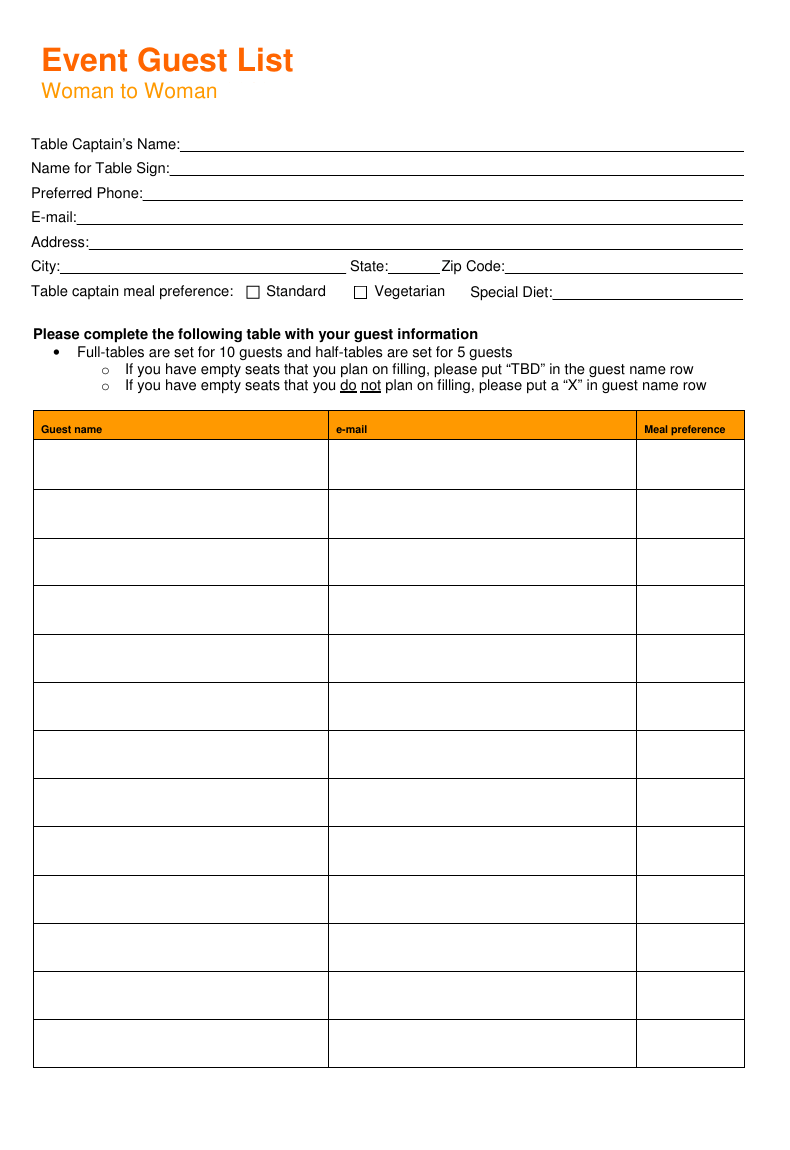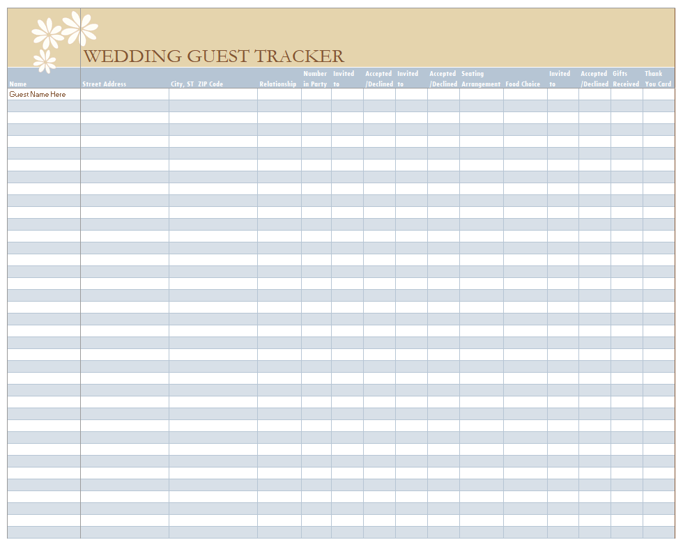 A guest list template is a document prepared for an event in which the names of invited people are mentioned. It depends upon the list of people who are invited to a marriage ceremony, birthday party, musical party and other functions or events in which people get together and meet. Moreover, the guest list can help with management by giving estimates of the number of people participating in an event. As far as different segments of a guest list are concerned, it depends upon you and your relationships, like friends, cousins, neighbors, colleagues, partners, classmates, teachers, and office staff members. People often remember only those with whom they have a better relationship with and wish to see them at their party or event. The purpose of inviting your guests is to share your happiness with them.